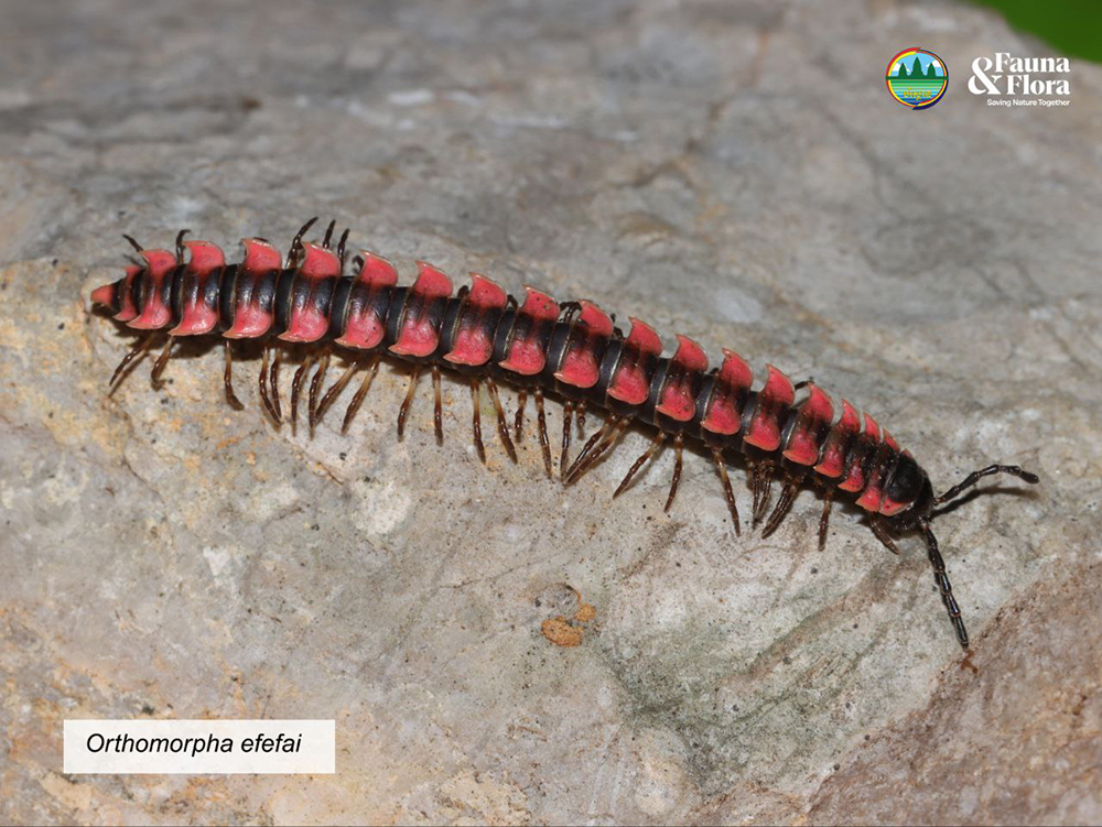 1. Orthomorpha efefai, discovered in Battambang in 2024, was named “efefai” in honour of Fauna & Flora, recognising the organisation’s commitment to biodiversity conservation.