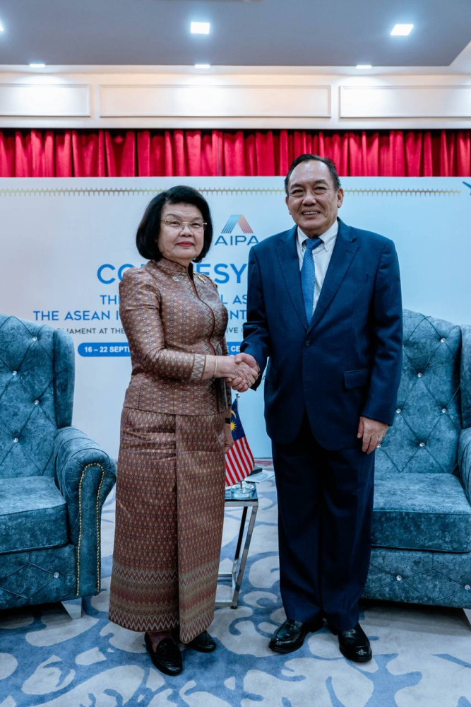 AKP Phnom Penh, September 20, 2025 -- Samdech Maha Rathsapheathika Thipadei Khuon Sudary, President of the National Assembly of the Kingdom of Cambodia, on Saturday paid a courtesy call on Hon. Senator Dato’ Awang Bemee Bin Awang Ali Basah, President of the Senate of Malaysia, during the 46th General Assembly of the ASEAN Inter-Parliamentary Assembly (AIPA) in Kuala Lumpur.