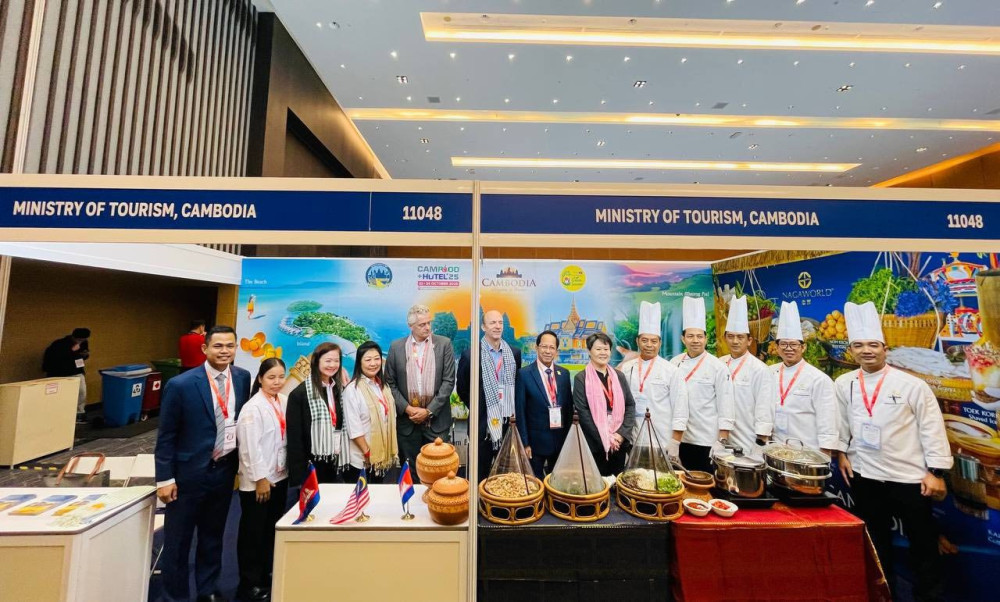 AKP Phnom Penh, September 25, 2025 -- The Ministry of Tourism, in collaboration with NagaWorld Hotel and the Cambodian Chefs Association, is showcasing Khmer signature dishes such as Fish Amok, Num Banchok (Khmer noodles), and cashew nuts at the Food and Hotel Malaysia (FHM) 2025 exhibition in Kuala Lumpur, Malaysia.