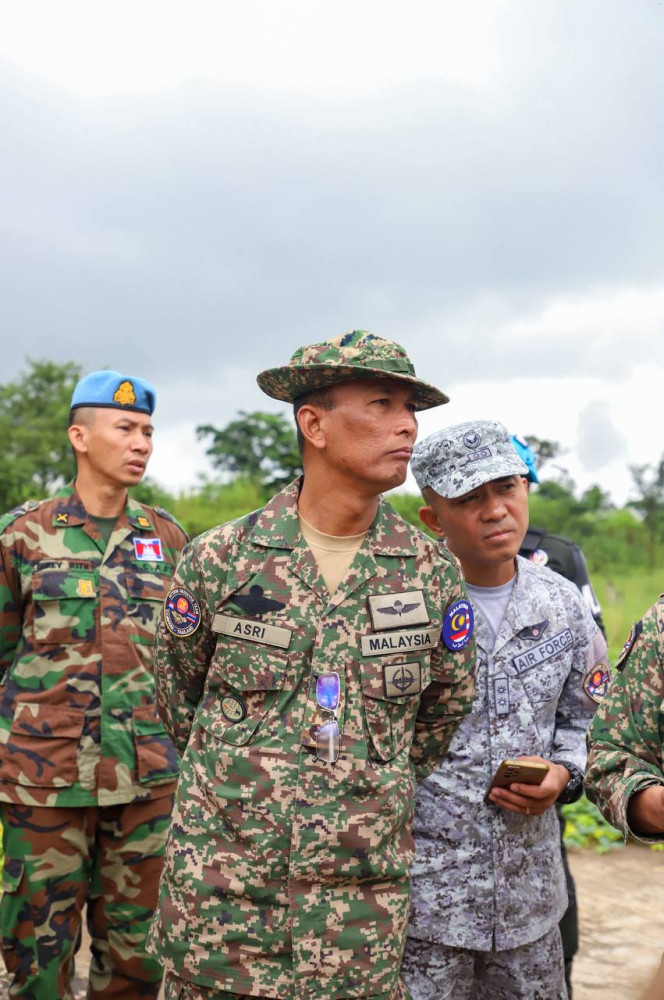 The Interim Observers Team (IOT), led by Malaysia this morning inspected the actual sites affected by two rounds of attacks carried out by the Thai military forces using mortar and small arms against the Cambodian military base in An Seh area, Preah Vihear province, on Sept. 27, 2025.