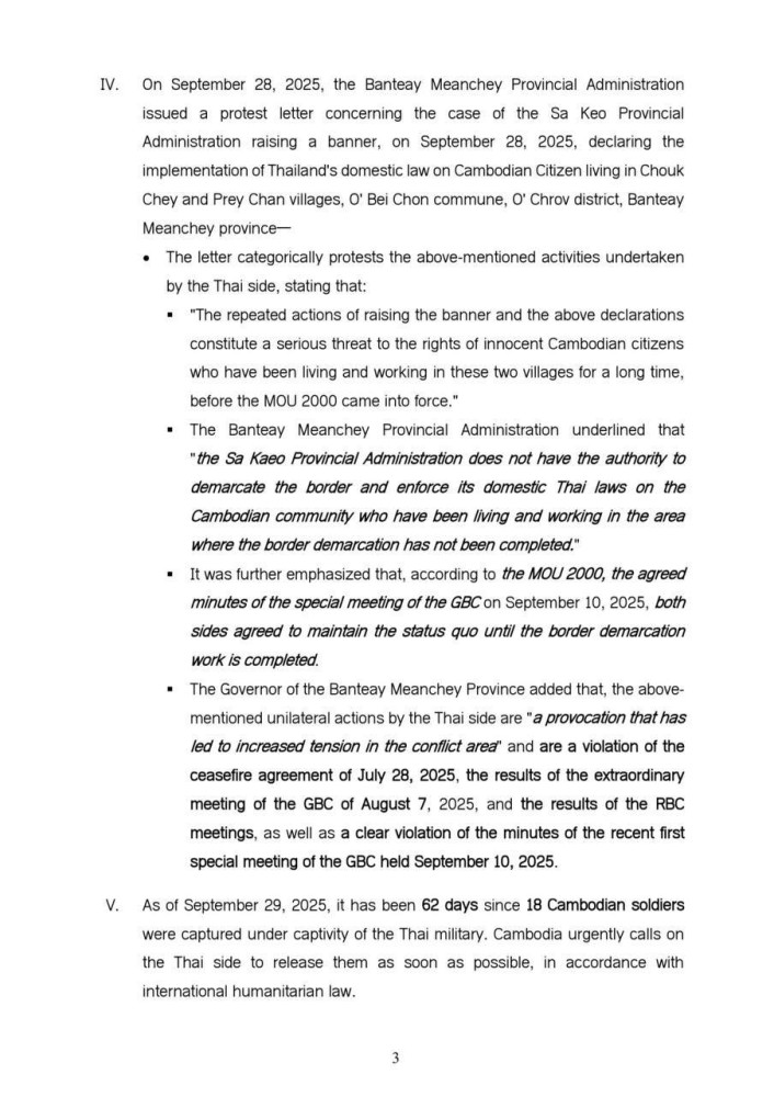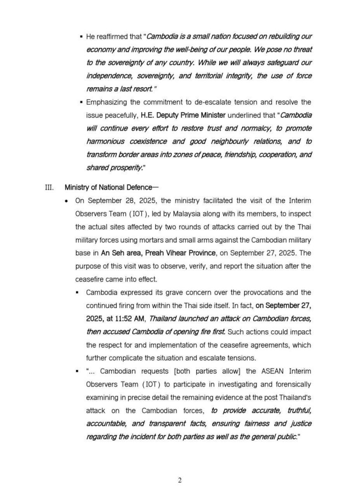Updates on the situation along the Cambodia-Thailand Border on 28-29 September 2025