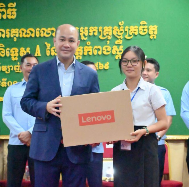 Organisers confirmed that each of the 79 Grade A students received one computer, personally sponsored by Deputy Prime Minister Hun Many.