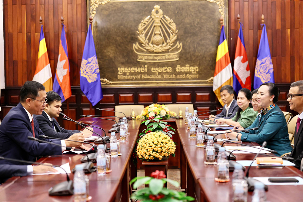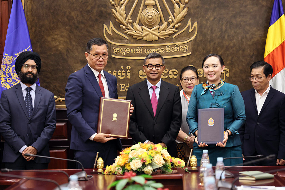 The MoUs were signed by H.E. Ms. Kim Sethany, Permanent Secretary of State, MoEYS, in the presence of H.E. Dr. Hang Chuon Naron, Deputy Prime Minister and Minister of Education, Youth and Sports, and H.E. Mr. Vanlalvawna Bawitlung, Ambassador of India to the Kingdom of Cambodia.