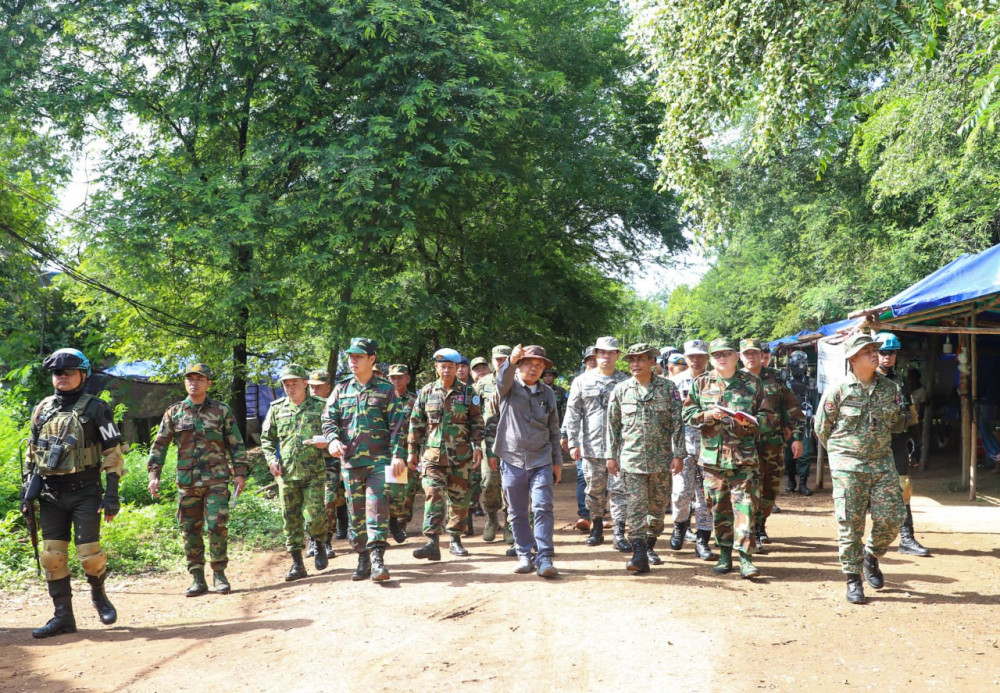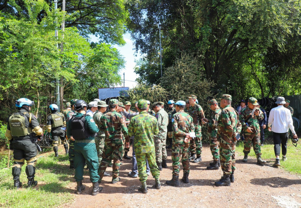 Interim Observer Team (IOT) conducts a field mission to Chork Chey and Prey Chan villages in O' Beichoan commune, O' Chrov district, Banteay Meanchey province this morning, to observe, verify, and report on the border situation after the ceasefire agreement came into effect.
