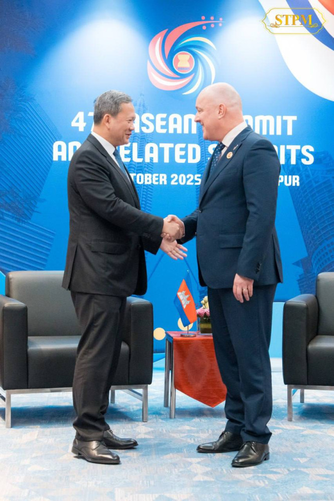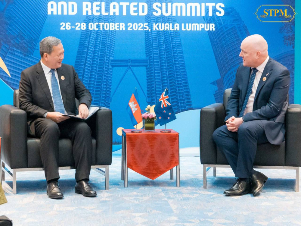 AKP Phnom Penh, October 27, 2025 -- Samdech Moha Borvor Thipadei Hun Manet, Prime Minister of the Kingdom of Cambodia, held a bilateral meeting with H.E. Christopher Luxon, Prime Minister of New Zealand, on the sidelines of the 47th ASEAN Summits and Related Summits in Kuala Lumpur, Malaysia, on Oct. 27.