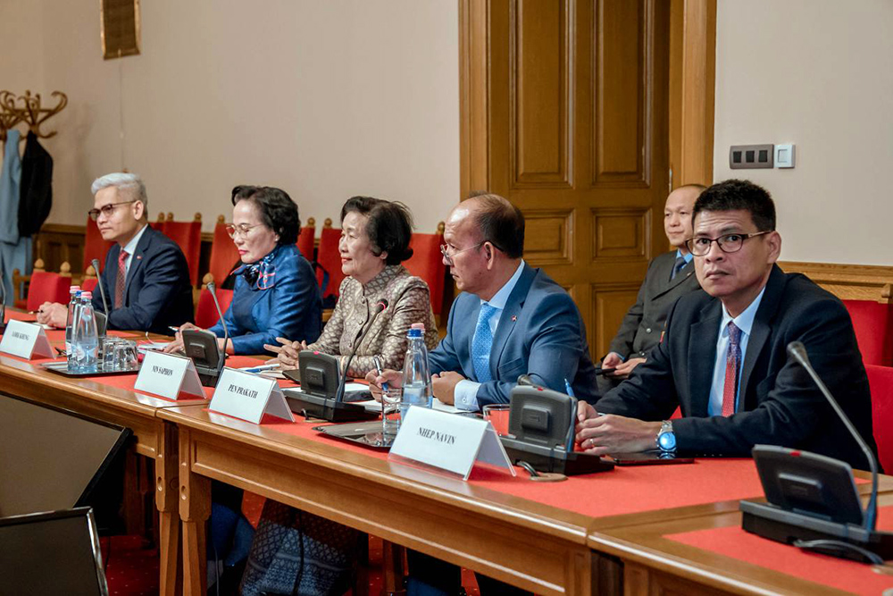During the official and friendly visit to Hungary led by Samdech Maha Rathsapheathika Thipadei Khuon Sudary, President of the National Assembly of Cambodia (NA), Hon. Lork Kheng, Chairwoman of NA Commission 8, and Hon. Nin Saphon, Chairwoman of NA Commission 9, held a working meeting with Hon. Zoltán Varga, Chairman of the Committee on Social Welfare of the Hungarian NA, and Hon. László Lóránt Keresztes, Chairman of the Committee on Sustainable Development.