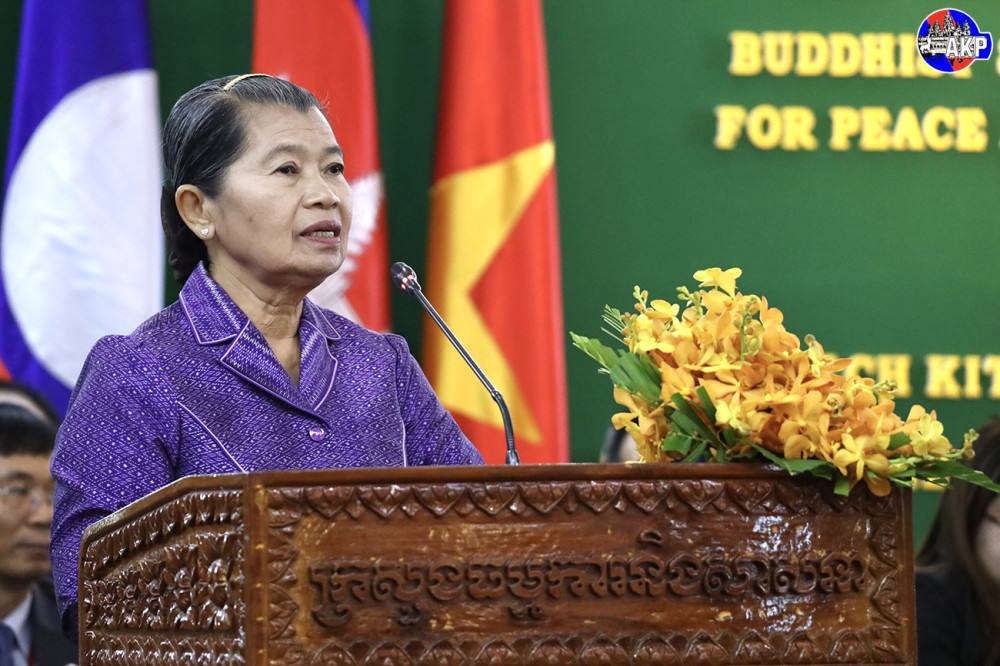 The remarks were made during her opening address at the Third Cambodia–Laos–Vietnam Buddhist Summit, held under the theme “Harmony of Buddhism for Peace and Sustainable Development” at the Cambodiana Hotel in Phnom Penh this morning.