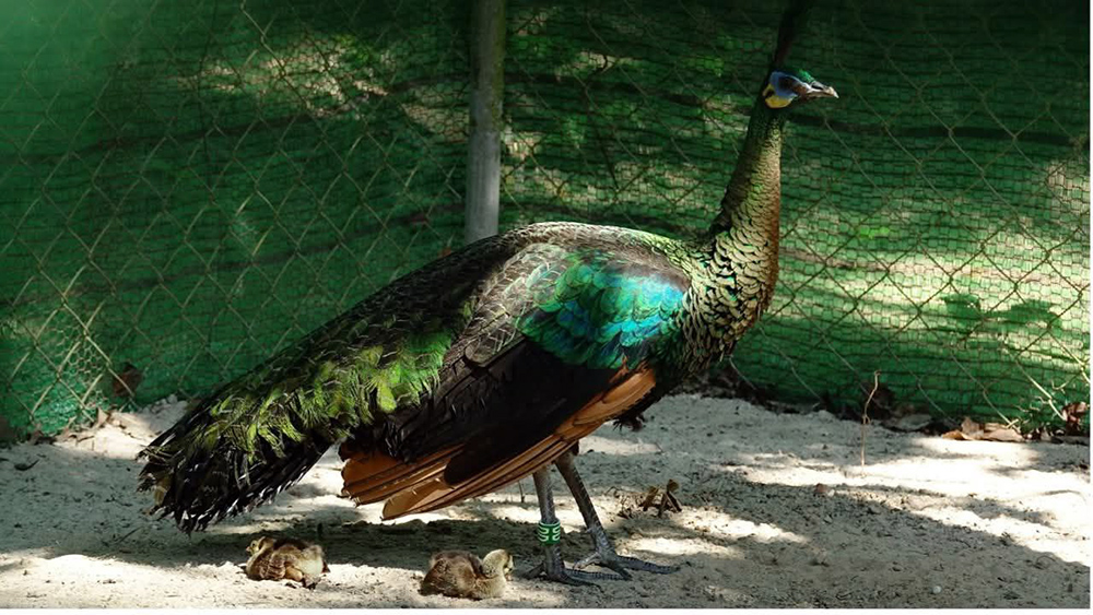 This year, the Angkor Centre for Conservation of Biodiversity (ACCB) has successfully bred and hatched seven chicks of peacock (or Green Peafowl).