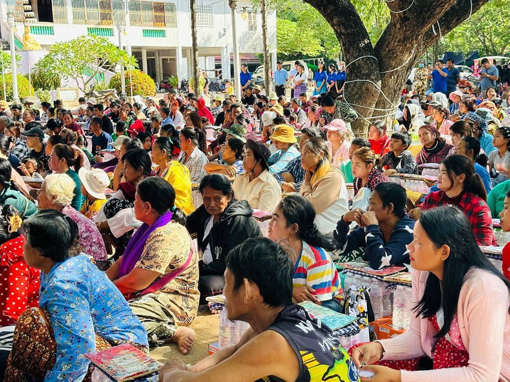 The delegation, led by H.E. Ke Kim Yan, a Member of National Assembly for Banteay Meanchey Constituency and Member of the Supreme Privy Council to His Majesty the King, met with the families who are currently sheltering at the Chan Sy Samaky Ratanaram Pagoda in O'Chrov district. The families fled their homes in Prey Chan and Chouk Chey villages after Thai forces opened fire.