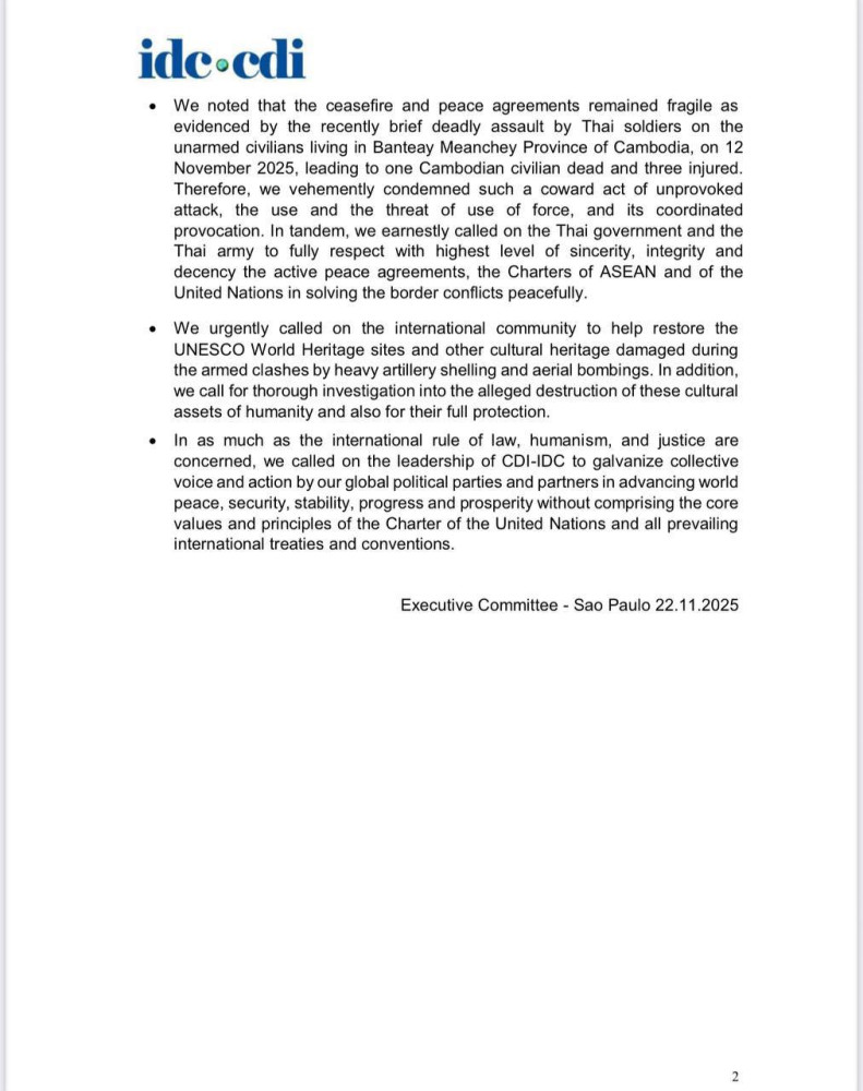 IDC-CDI Supports Cambodia-Thailand Peace Truce, Urges Thai Side for Full Respect