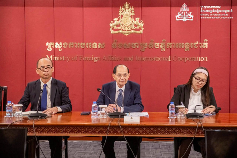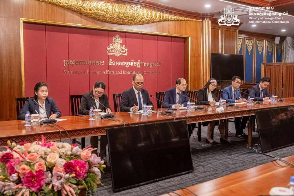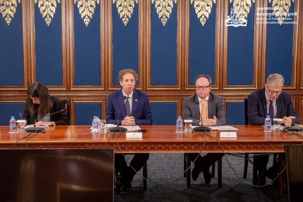 H.E. KAN Pharidh (C, Pic. 1), Secretary of State at the Ministry of Foreign Affairs and International Cooperation, holds a meeting here this afternoon with H.E. Christian DesRoches (R, Pic. 2), Ambassador of Canada; H.E. Igor Driesmans (2nd L, Pic. 2), Ambassador of the European Union; and H.E. Stefan Messerer (2nd R, Pic. 2), Ambassador of Germany to Cambodia.