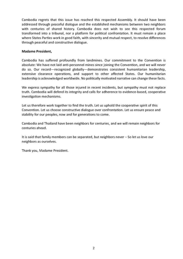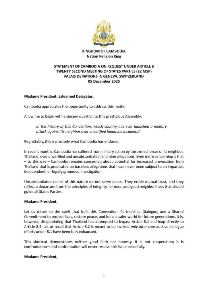 Statement of Cambodia on Request under Article 8 at Twenty Second Meeting of State Parties (22 MSP) in Geneva