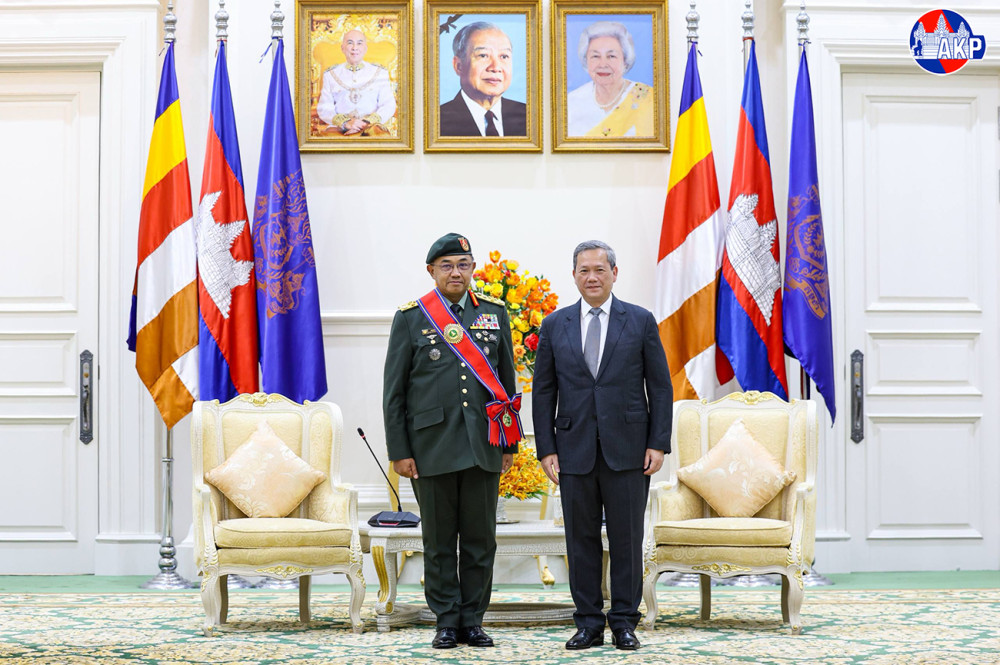 Prime Minister of Cambodia Samdech Moha Borvor Thipadei Hun Manet, this morning met with H.E. General Tan Sri Hj Mohd Nizam bin Hj Jaffar, Chief of Defence Forces of Malaysia, and his delegation for a courtesy call and working discussion at the Peace Palace.
