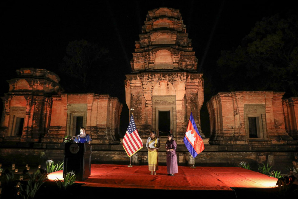 The event was held at Kravan Temple in Siem Reap province to reflect on the achievements of bilateral historic partnership and celebrate the strength of present relationship, including initiatives to support and preserve Cambodia’s rich cultural heritage, the U.S. embassy said in a statement.
