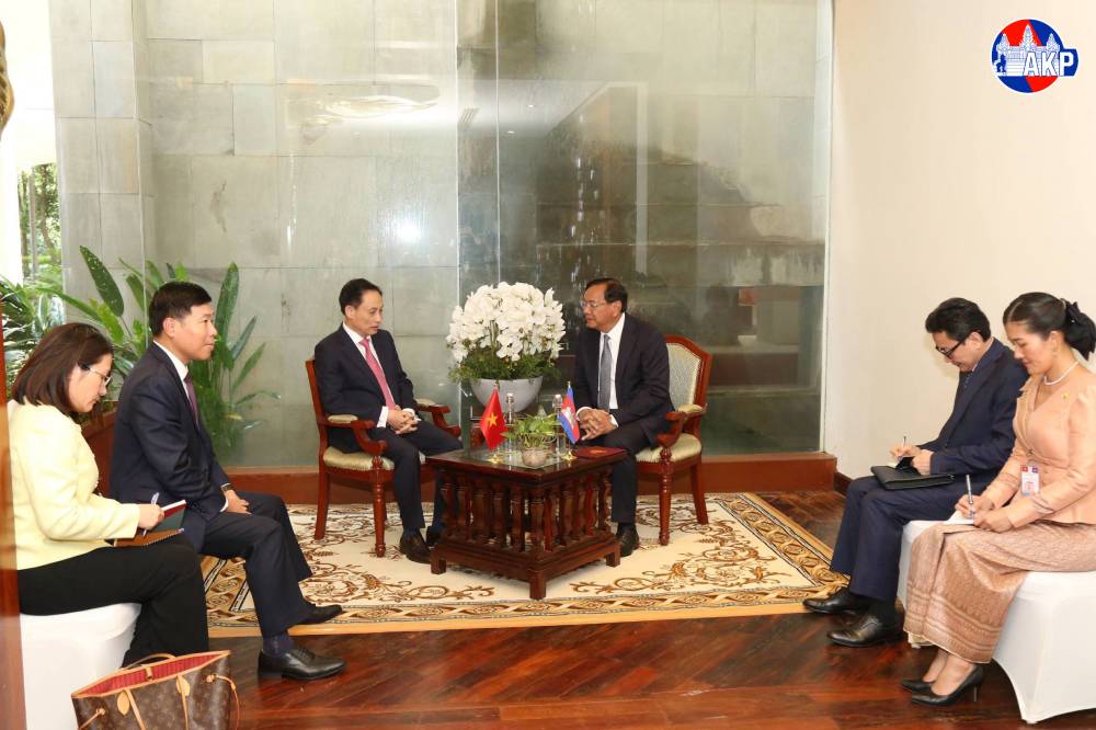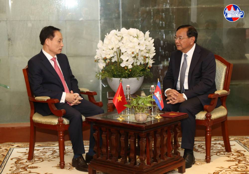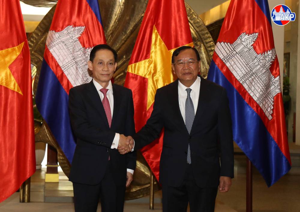 Cambodian Deputy Prime Minister and Minister of Foreign Affairs and International Cooperation H.E. Prak Sokhonn (R, Pic. 1) poses for a photo with visiting H.E. Le Hoai Trung, Minister of Foreign Affairs of the Socialist Republic of Viet Nam, prior to their bilateral meeting in Siem Reap province this afternoon, ahead of the 21st Meeting of the Cambodia-Viet Nam Joint Commission on Economic, Cultural, Scientific and Technical Cooperation.