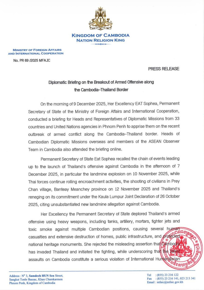 Diplomatic Briefing on Breakout of Armed Offensive along Cambodia-Thailand Border