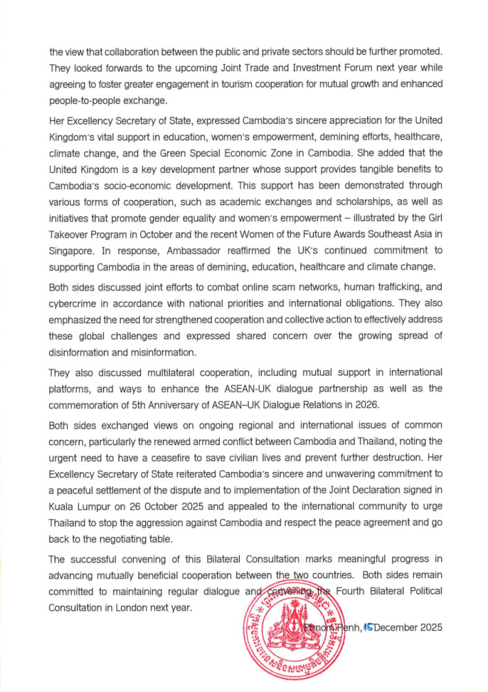 Outcomes of 3rd Session of Bilateral Political Consultations between Cambodian and UK Ministries of Foreign Affairs