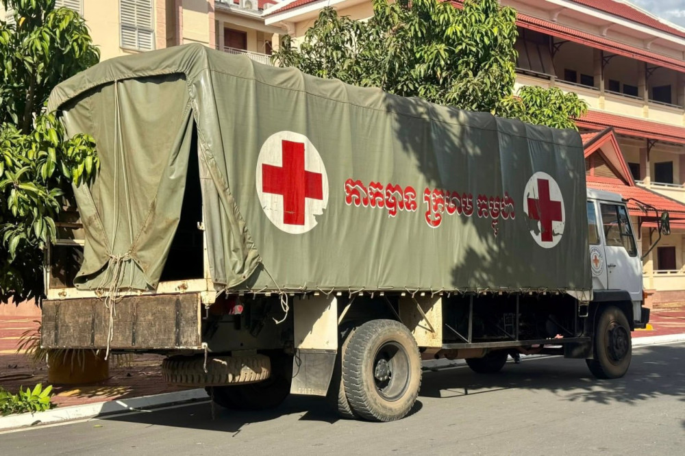 The Cambodian Red Cross (CRC) on Monday afternoon dispatched 100 tonnes of rice and thousands of cases of water and soft drinks to five provinces to support civilians displaced by rising border tensions with Thailand.