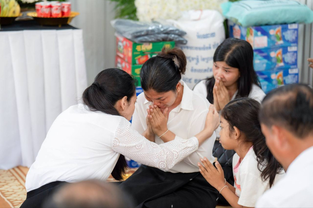 During the ceremony, the First Lady delivered condolences on behalf of the country’s top leadership, including the Senate President Samdech Akka Moha Sena Padei Techo Hun Sen; the Cambodian Red Cross President Samdech Kittiprittpundit Bun Rany Hun Sen and her husband, Prime Minister Samdech Moha Borvor Thipadei Hun Manet to the bereaved families.