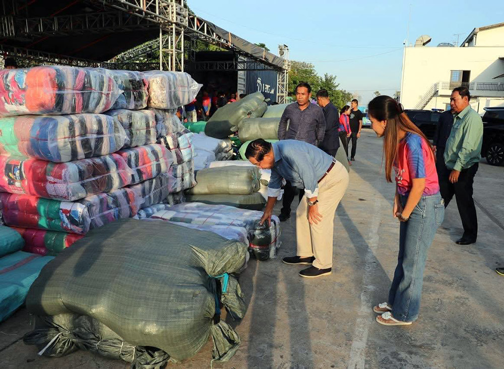 Samdech Techo Hun Sen visited a team responsible for packing relief supplies organised under the auspices of Samdech Hun Sen and his wife, Samdech Kittiprittpundit Bun Rany Hun Sen, as well as Prime Minister Samdech Moha Borvor Thipadei Hun Manet and his wife, Lok Chumteav Dr. Pich Chanmony.