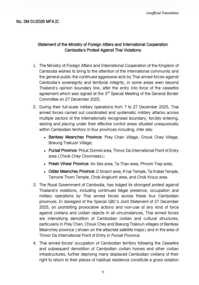 Cambodian Issues Statement Protesting Against Thai Violations