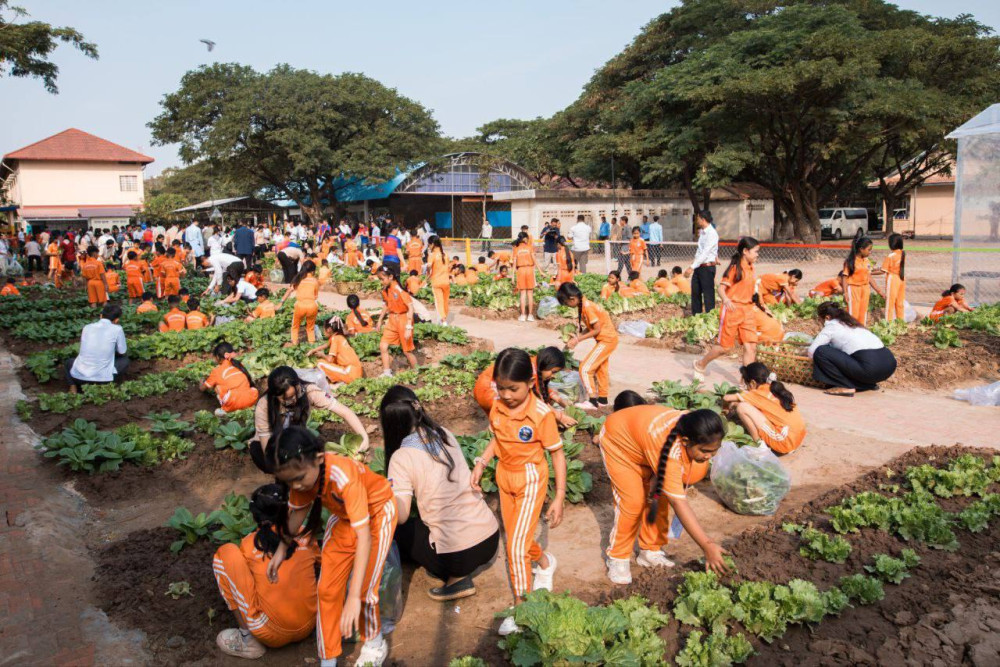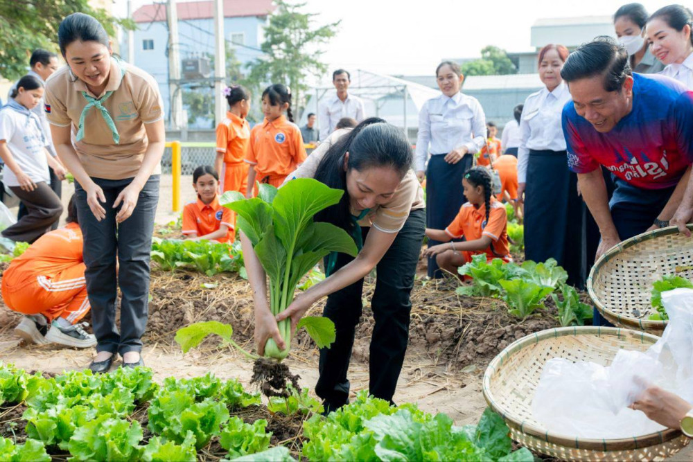 Schools and communities across the Cambodian capital began harvesting organic produce on Sunday as part of a nationwide mobilisation effort to provide fresh food supplies to frontline forces and civilians displaced by ongoing border tensions.