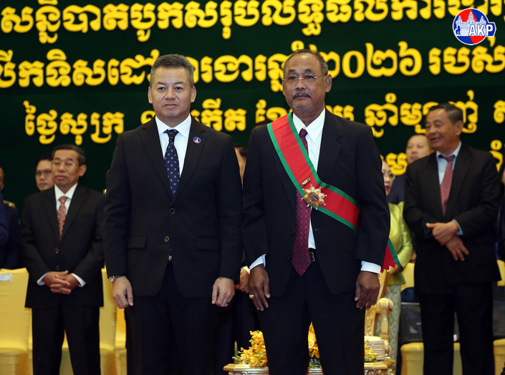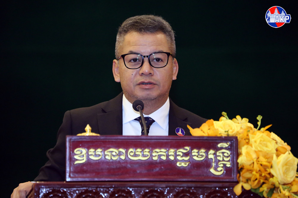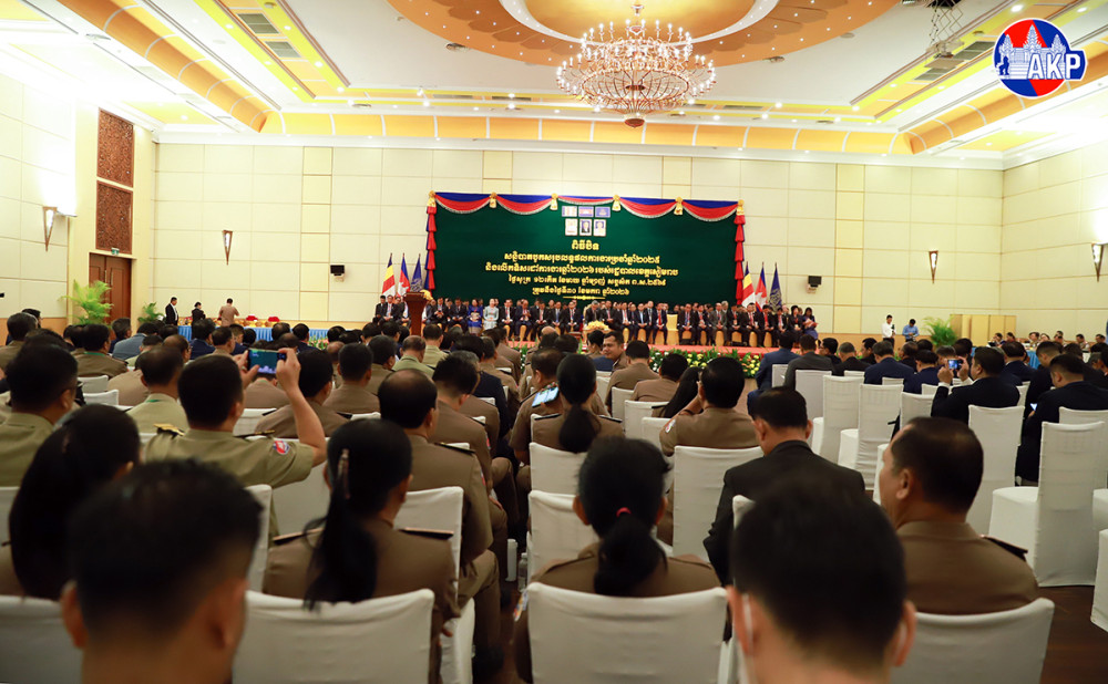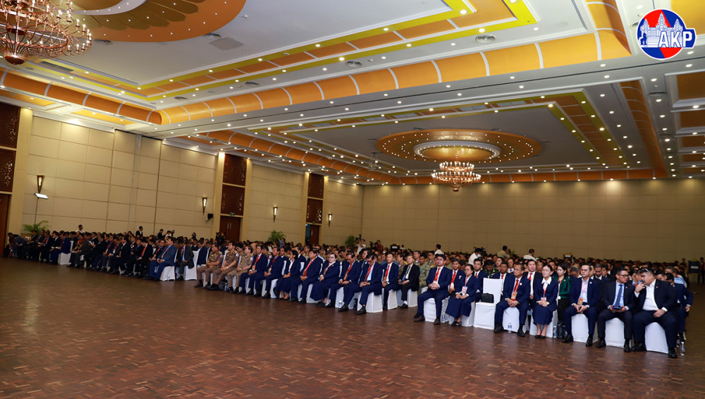 H.E. General Tea Seiha (Pic. 1), Deputy Prime Minister, Minister of National Defence, and Head of the Royal Government Working Group for Siem Reap Province, delivers his remarks while he was presiding over the closing ceremony of the annual meeting of the Siem Reap Provincial Administration, held in the provincial city this morning.