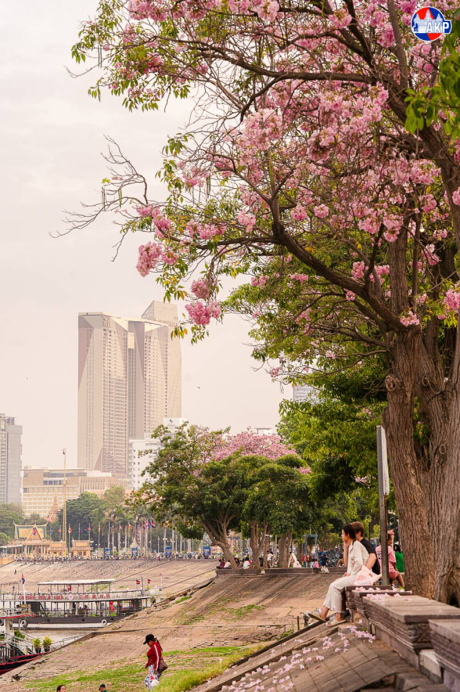 Photos of the Week: Chumpou Tep or Cambodian Sakura (Cherry Blossom) Blossoming Along River near Royal Palace