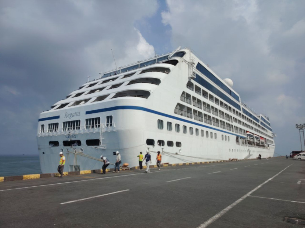 The international cruise ship REGAIN arrived at the Sihanoukville Autonomous Port today, bringing over 600 international tourists of various nationalities to Cambodia.