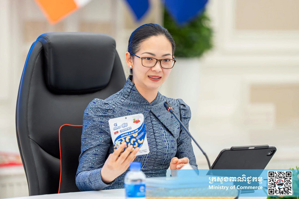 H.E. Mrs. Cham Nimul, Minister of Commerce, presided over a meeting here on Monday of the inter-ministerial committee to monitor and evaluate the implementation of the National Cashew Policy 2022-2027, with the participation of committee members, representatives of the Cashew Nut Association of Cambodia (CAC), and representatives of provincial governors via video conference.