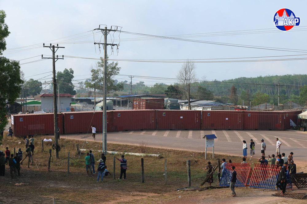According to local authorities, the containers were installed on the morning of Feb. 7, following earlier placement of barbed wire in the same area. Cambodian officials said the actions effectively blocked the road and encroached on Cambodian territory, describing the move as a breach of existing agreements, joint statements, and international law.