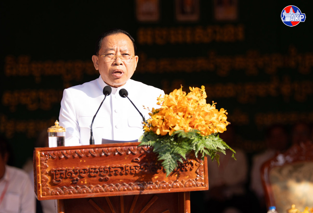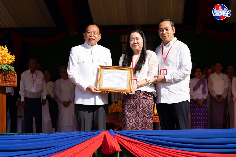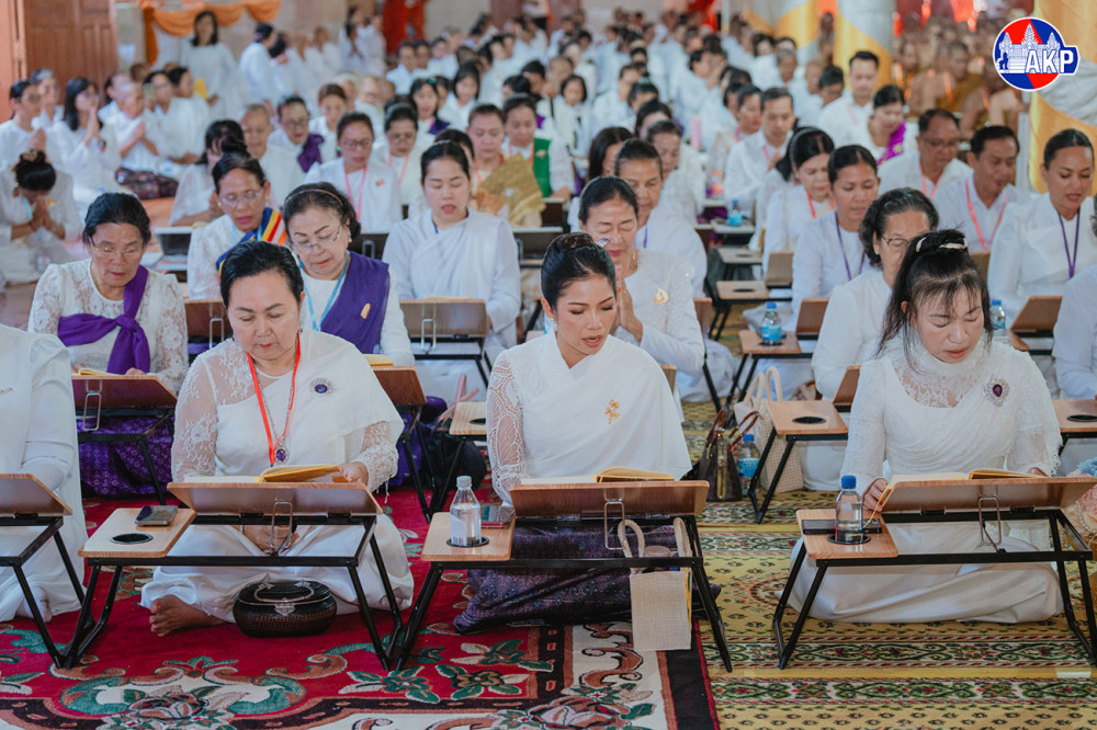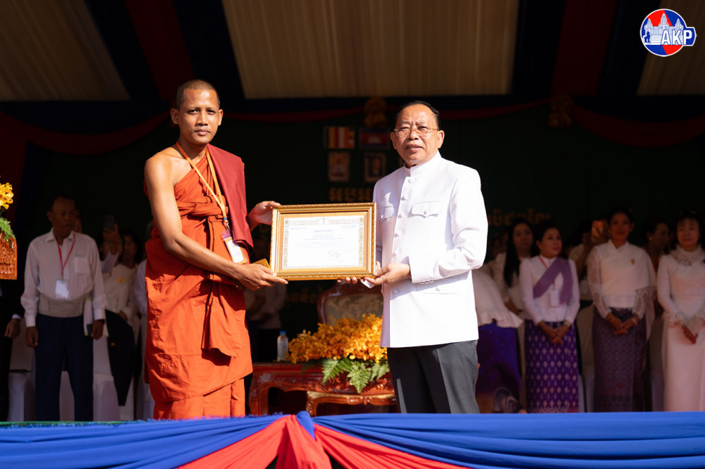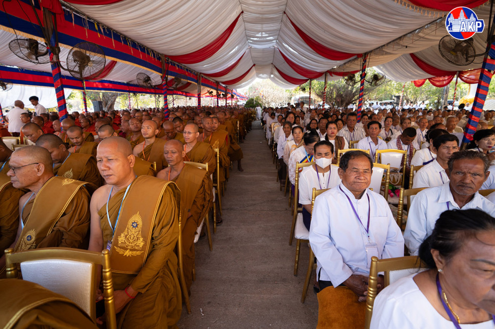 H.E. Chay Borin (C, Pic. 1), Minister of Cult and Religion, presides over the celebration of the 56th anniversary of the Khmer translation of the Tipitaka, including the recital of the Tipitaka, at the Vipassana Dhura Buddhist Centre of the Kingdom of Cambodia (Phnom Preah Reach Troap) in Ponhea Leu district, Kandal province, this morning.