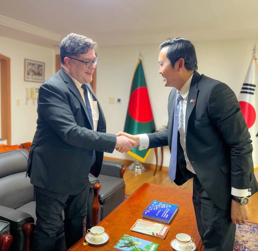 The discussions focused on several key areas of joint interest, including: Strengthening ties between the two embassies to streamline diplomatic missions within South Korea; Committing to mutual support in safeguarding the interests and welfare of the Cambodian and Bangladeshi expatriate communities living and working in the country; Exchanging perspectives on pressing regional and international issues of shared concern.