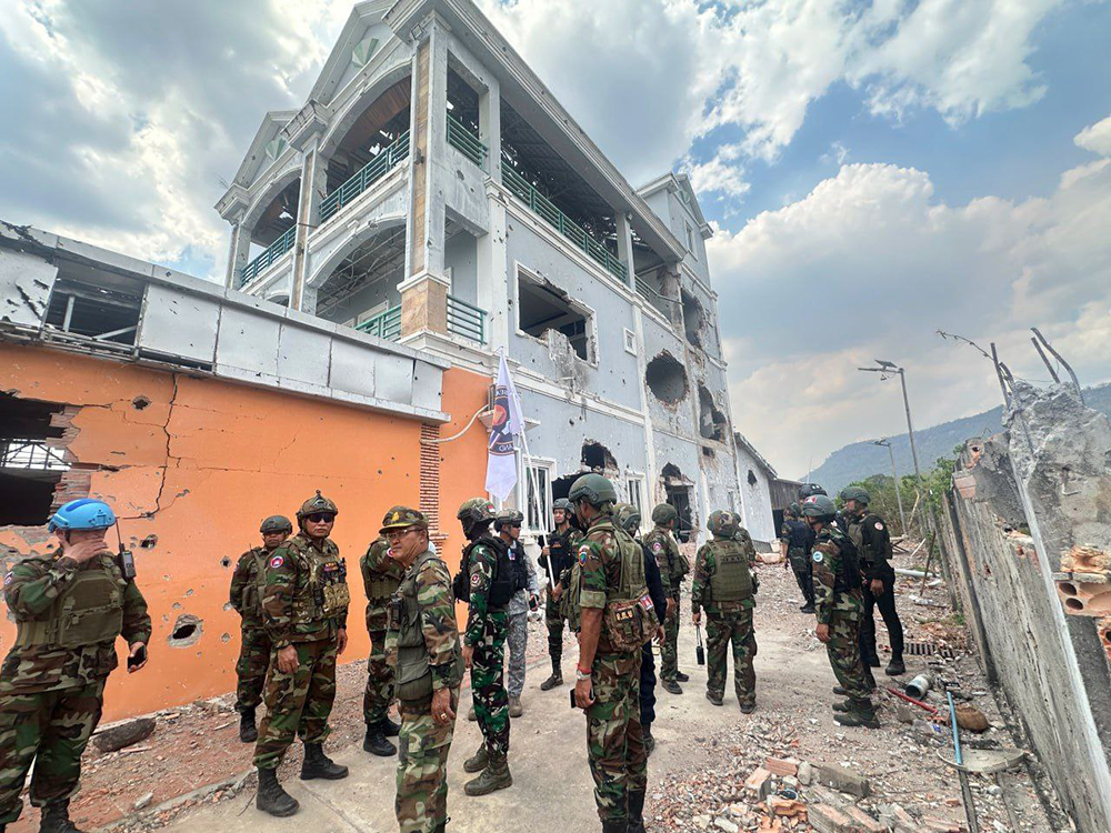 H.E. Lieutenant General Maly Socheata, Spokeswoman for the Ministry of National Defence, said that at 1:05 p.m. on Feb. 26, the Cambodian Liaison Group facilitated the ASEAN Observer Team in observing, verifying, and reporting on the updated border situation in An Ses village, Choam Ksan commune, Choam Ksan district.