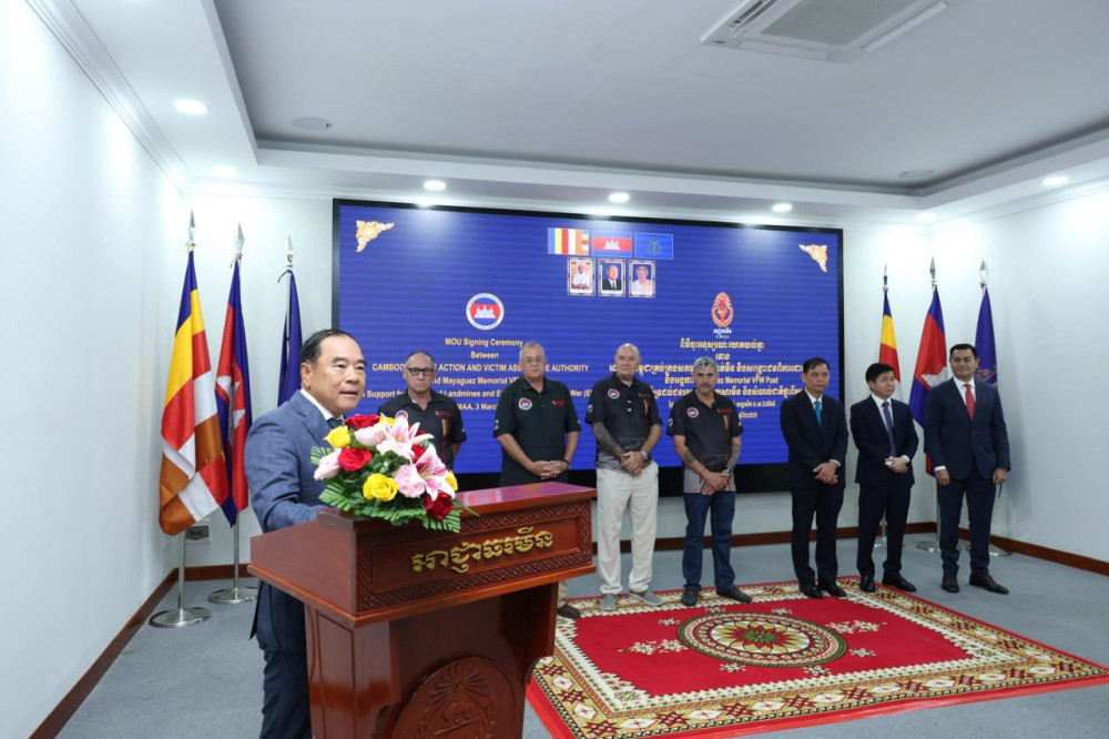 Speaking at the signing of a memorandum of understanding between the Cambodian Mine Action and Victim Assistance Authority (CMAA) and Mayaguez Memorial VFW Post 11575, H.E. Dr. Ly Thuch, who serves as the First Vice President of CMAA, said mine action and victim assistance remain a national priority.