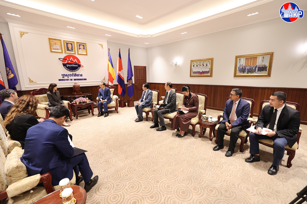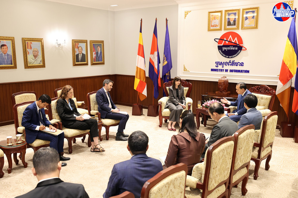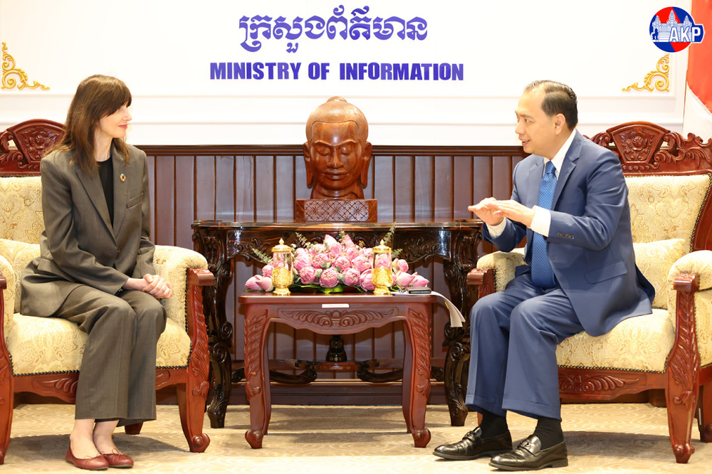 H.E. Neth Pheaktra (R, Pic. 1), Cambodian Minister of Information, holds talks with H.E. Ms. Vladanka Andreeva, new UN Resident Coordinator in Cambodia, at the Ministry’s office in Phnom Penh this afternoon.