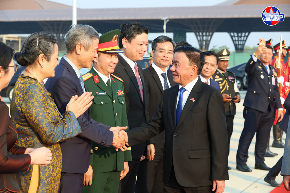 H.E. Tran Cam Tu (Pic. 1). Member of the Politburo and Permanent Member of the Secretariat of the Communist Party of Vietnam (CPV) Central Committee, bids farewell to the well-wishers at Techo International Airport this evening, upon successfully concluding his two-day official visit to the Kingdom of Cambodia.
