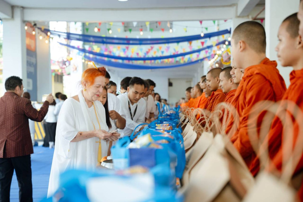 The program began with a friendship breakfast featuring 10 varieties of Nom Banh Chok, representing the culinary diversity of Cambodia’s provinces. This was followed by a traditional blessing ceremony conducted by monks, and a food offering to 80 monks, reflecting deeply rooted Buddhist values.