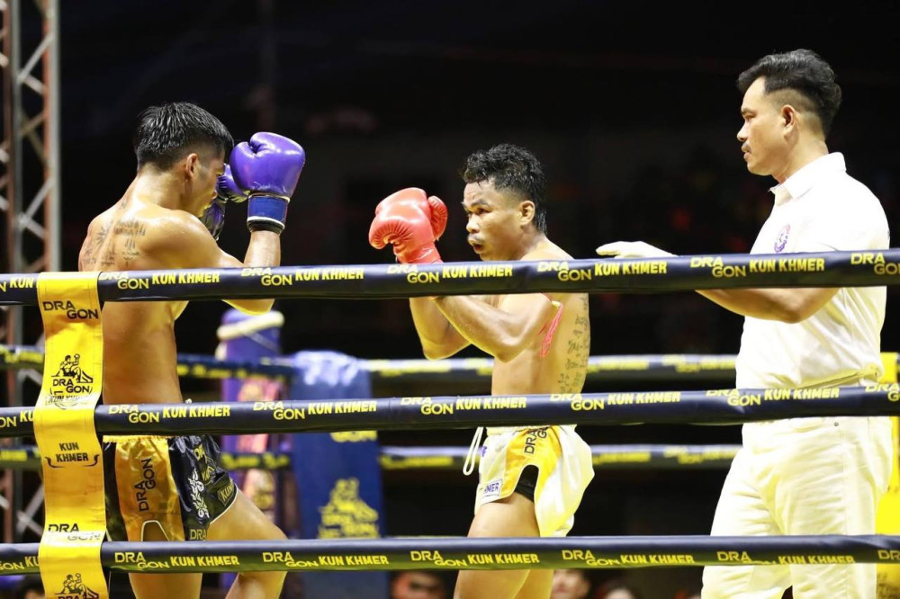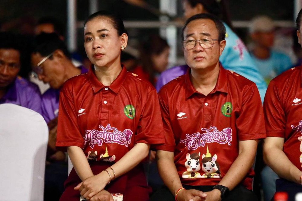 H.E. Abhisantibindit Sar Sokha (C, Pic. 1), Deputy Prime Minister and Minister of Interior, and his spouse on April 15 watch Kun Khmer match during the 2nd day of Khmer New Year in Prey Veng provincial city.