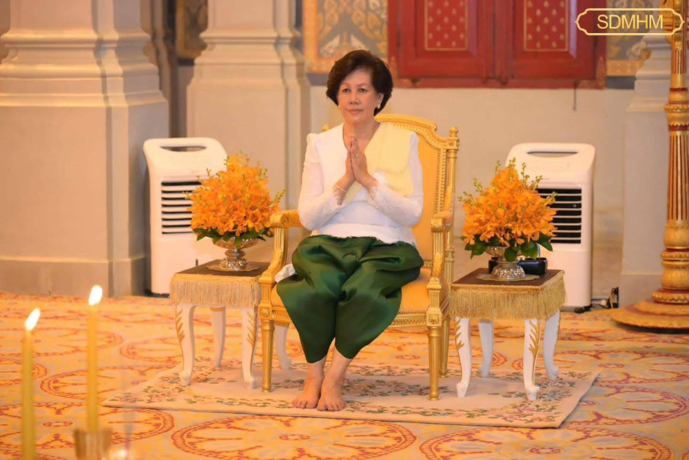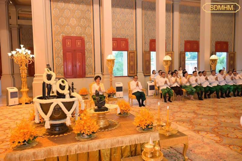 Her Royal Highness Princess Samdech Reach Botrei Preah Anoch Norodom Arunrasmy (Pic. 1), Member of the Supreme Privy Councillor to His Majesty the King, Member of the Senate, Founder of the Mudita Foundation, and High Representative of His Majesty the King, bathes deity statues in a royal ceremony held at the Royal Palace’s Throne Hall this afternoon.