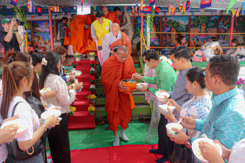 The celebration adhered strictly to Khmer cultural customs, featuring traditional religious ceremonies such as the offering of alms to Buddhist monks, the bathing of Buddha statues, and the building of sand mountains.
