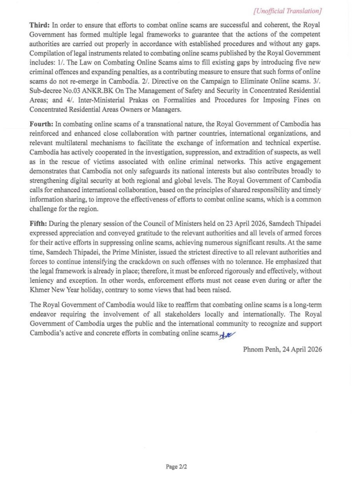 Royal Government’s Commitment and Concrete Actions in Combating Online Scams Highlighted