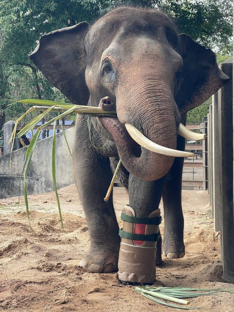 Chhouk, Cambodia’s well-known elephant who survived a life-threatening snare injury nearly two decades ago, has taken another hopeful step forward after receiving a new prosthetic leg.